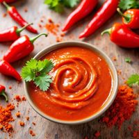Sauce featuring a bold, medium-level spice from cayenne and paprika, offering a robust and zesty flavor.