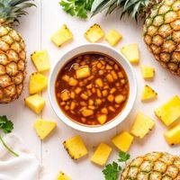 A harmonious blend of soy sauce, pineapple juice, sweet rice seasoning, brown sugar, and honey.