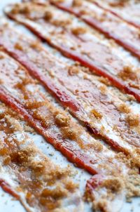 Candied bacon: Thick-cut bacon glazed with brown sugar and a blend of spices.