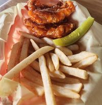 The wings where really good, crunchy and the fries where nice and hot.